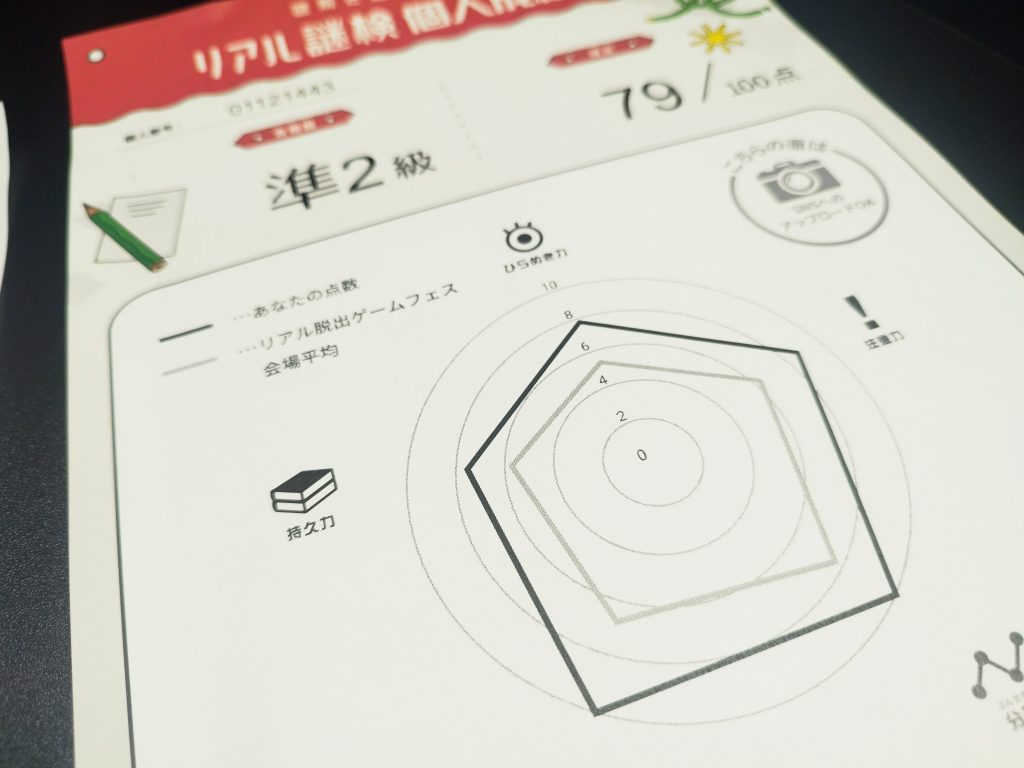 そして問題数もオンラインでは60分50問のところ、リアル謎検では30分20問とかなりコンパクト。これを「物足りない!」と思う人はいるでしょうが、これは通常の謎解き公演と異なり個人戦。ギリギリ集中力が保つレベルでとても解きやすかったです。